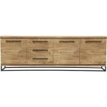 Dressoir London met 3 deuren en 3 lades heeft een strakke robuuste uitstraling die mooi aansluit in een modern industrieel interieur. Het dressoir heeft veel opbergmogelijkheden en bovenop het dressoir genoeg plek voor al jouw mooie accessoires. De deuren en lades zijn voorzien van een softclosesysteem waardoor deze altijd rustig sluiten. De strakke zwarte designpoot en handgrepen geven dressoir London een stoere en stijlvolle uitstraling. De kast heeft een melamine afwerking in de kleur mango. Melamine is een sterk materiaal dat oogt als massief hout. Het is in hoge mate krasbestendig en onderhoudsvriendelijk: je hoeft hem enkel schoon te maken met een vochtige doek. Het dressoir London is daarmee een ideale eyecatcher in jouw interieur als buffetkast of voorraadkast. Dressoir London kopen? Bestel hem dan nu online of kom langs in een van onze vestigingen!