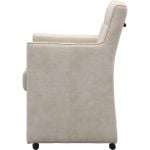 Op eetkamerstoel Wesley wordt dineren een feestje! Met een zithoogte van 50,5 cm, een zitdiepte van 46 cm en de armleuningen, biedt Wesley comfortabele elegantie. De bekleding, microleder Luxor, en de zwarte metalen poot geven de stoel een stoere touch. Kies uit de trendy kleuren antracite, sand en thyme om perfect bij jouw interieur aan te laten sluiten. Wesley is niet alleen mooi, maar ook super praktisch door de zwarte wieltjes en het handvat op de rug. Transformeer jouw eetruimte met eetkamerstoel Wesley. Verkrijgbaar bij onze winkels en in deze webshop!